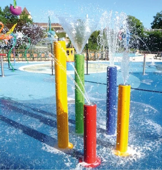 Water jets in a variety of colors, shapes and designs or with paintings by the Swiss-French artist Claire Ochsner can be configured individually or in combinations. API 3D SPRAY makes your water park shine!